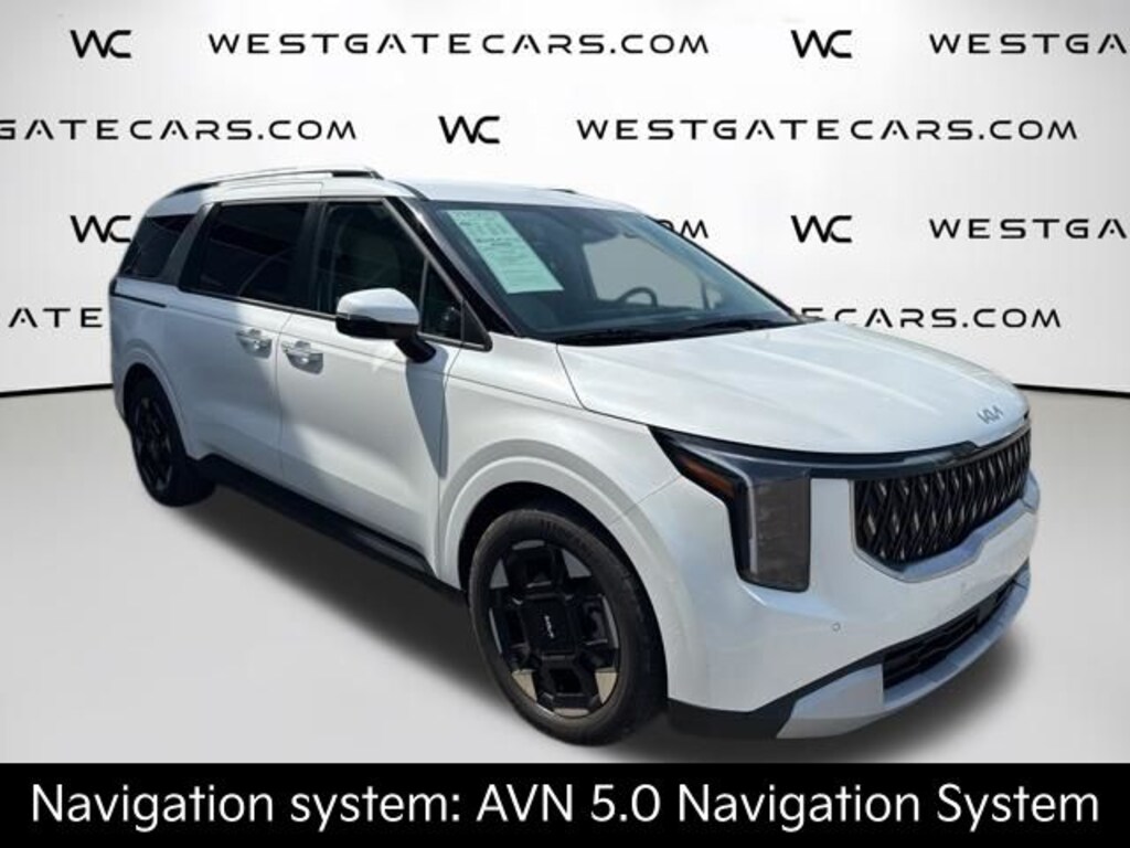 This 2025 Kia Carnival EX is a versatile and well-equipped family hauler that offers a wealth of premium features and technologies. With its spacious 8-passenger cabin, powerful V6 engine, and impressive fuel efficiency, this Carnival is ready to handle all your family's needs with ease. The striking Snow White Pearl exterior complements the thoughtfully designed interior, which boasts luxurious touches like heated leather seats, a state-of-the-art navigation system, and a host of advanced safety and convenience features. Whether you're shuttling the kids to school, embarking on a road trip, or simply running errands around town, this Carnival EX will make every journey a pleasure.