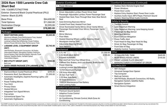 - Exterior Color : Diamond Black Crystal Pearlcoat Interior Color : BLACK