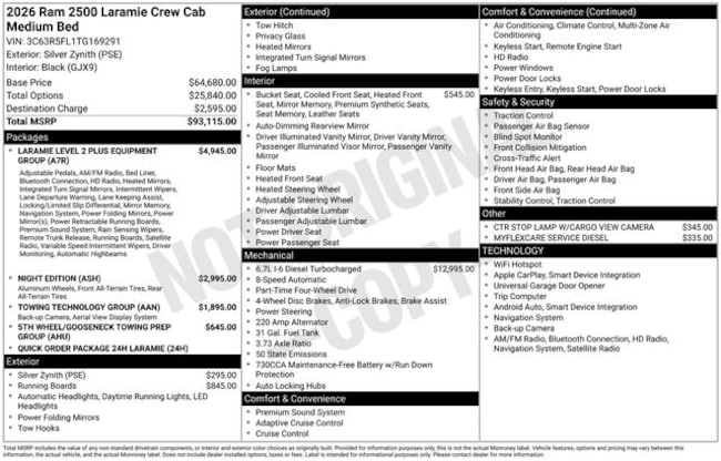 - Diesel engine warranty: 60 months/100,000miles