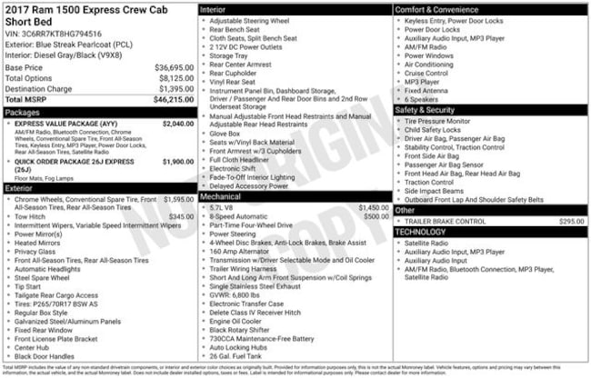 - Exterior Color : Blue Streak Pearlcoat Interior Color : DIESEL GRAY/BLACK