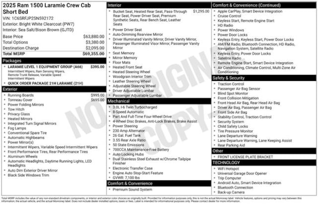 - Exterior Color : Bright White Interior Color : SEA SALT/BISON BROWN