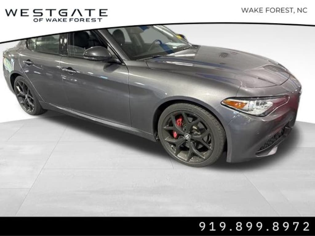 Recent Arrival! Come see this vehicle and many more at Westgate Kia in Wake Forest!!, Still under Alfa Romeo factory warranty until 50K miles, and eligible for up to 100K miles warranty!!, 8 Speakers, Active Assist 2 Package Ti, Active Blind Spot Assist, Adaptive Cruise Control w/Stop, AM/FM radio: SiriusXM, Apple CarPlay/Android Auto, Auto High Beam Headlamp Control, Auto-Dimming Exterior Mirrors, Auto-dimming Rear-View mirror, Automatic temperature control, Dark Miron Badging, Dark Miron Exterior Mirror Caps, Dark Miron V Scudetto Grille, Driver Attention Alert, Exterior Parking Camera Rear, Front dual zone A/C, Fully automatic headlights, Garage door transmitter, Gloss Black Window Surround Moldings, Heated front seats, Heated steering wheel, High intensity discharge headlights: Bi-Xenon, Highway Assist System, Infrared Windshield, Intelligent Speed Assist (ISA), Lane Keep Assist, Leather Seats, Memory seat, Nero Edizione, Perforated Leather Shift Knob, Power driver seat, Power moonroof, Power passenger seat, Quick Order Package 22T, Radio: AM/FM/HD 8.8" w/Navigation, Sport Leather-Wrapped Steering Wheel, Traffic Jam Assist, Traffic Sign Recognition, Wheels: 19" x 8.0" Miron Y-Spoke Aluminum, Wireless Charging Pad.
