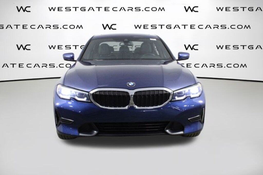 Phytonic Blue Metallic 2021 BMW 3 Series 330i xDrive AWD 8-Speed Automatic Sport 2.0L 4-Cylinder DOHC 16V Turbocharged AWD, 10 Speakers, 4-Wheel Disc Brakes, ABS brakes, Air Conditioning, Alloy wheels, AM/FM radio: SiriusXM with 360L, Ambient Lighting, Apple CarPlay & Android Auto Compatibility, Auto High-beam Headlights, Auto-dimming door mirrors, Auto-dimming Rear-View mirror, Automatic temperature control, BMW Assist eCall, BMW TeleServices, Brake assist, Bumpers: body-color, Comfort Access Keyless Entry, Compass, Connected Package Pro, ConnectedDrive Services, Convenience Package, Delay-off headlights, Driver door bin, Driver vanity mirror, Dual front impact airbags, Dual front side impact airbags, DVD Area Coding (North America), Electronic Stability Control, Emergency communication system: BMW Assist eCall, Exterior Parking Camera Rear, Four wheel independent suspension, Front anti-roll bar, Front Bucket Seats, Front Center Armrest, Front dual zone A/C, Front reading lights, Fully automatic headlights, Garage door transmitter, Genuine wood console insert, Genuine wood dashboard insert, Hands-Free Bluetooth & USB Audio Connection, Heated door mirrors, Heated Front Seats, Heated Steering Wheel, Hi-Fi Sound System, Illuminated entry, Knee airbag, Leather Shift Knob, Leather steering wheel, Low tire pressure warning, Lumbar Support, Memory seat, Navigation, Navigation System, Occupant sensing airbag, Outside temperature display, Overhead airbag, Panic alarm, Park Distance Control, Passenger door bin, Passenger vanity mirror, Power door mirrors, Power driver seat, Power Front Seats, Power moonroof, Power passenger seat, Power steering, Power windows, Radio Control US, Radio data system, Radio: AM/FM Audio System, Rain sensing wipers, Rear air conditioning, Rear anti-roll bar, Rear reading lights, Rear seat center armrest, Rear window defroster, Remote Engine Start, Remote keyless entry, Security system, SensaTec Upholstery, SiriusXM w/360L, Speed control, Speed-sensing steering, Speed-Sensitive Wipers, Split folding rear seat, Sport Seats, Sport steering wheel, Steering wheel mounted audio controls, Tachometer, Telescoping steering wheel, Tilt steering wheel, Traction control, Trip computer, Turn signal indicator mirrors, Variably intermittent wipers, Wheels: 18" x 7.5" V-Spoke Bi-Color Orbit Grey, AWD.