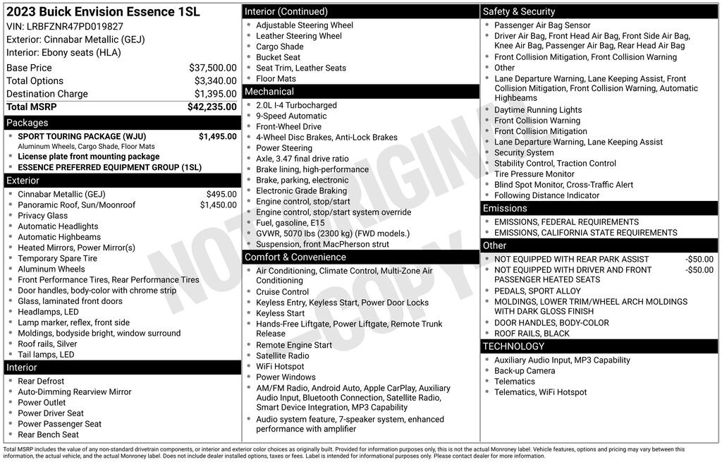 This stunning 2023 Buick Envision Essence is a standout in its class, offering a captivating blend of style, performance, and cutting-edge technology. With its striking Cinnabar Metallic exterior and an array of premium features, this Envision is poised to elevate your driving experience to new heights.