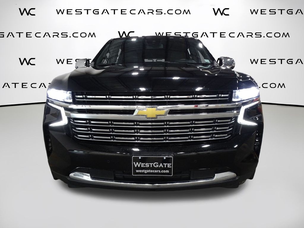 Clean CARFAX. CARFAX One-Owner. 10 Speakers, 12-Way Power Driver & Passenger Seat Adjusters, 1st & 2nd Row Color-Keyed Carpeted Floor Mats, 2-Speed Active Electronic AutoTrac Transfer Case, 20" x 9" Polished Aluminum Wheels, 2nd Row Pwr Release 60/40 Split-Folding Bench Seat, 3.23 Rear Axle Ratio, 3rd Row 60/40 Power-Folding Split-Bench, 3rd row seats: split-bench, 4-Wheel Disc Brakes, ABS brakes, Adaptive suspension, Air Conditioning, Alloy wheels, AM/FM radio: SiriusXM with 360L, Apple CarPlay/Android Auto, Auto High-beam Headlights, Auto-dimming door mirrors, Auto-Dimming Inside Rear-View Mirror, Auto-dimming Rear-View mirror, Auto-leveling suspension, Automatic temperature control, Bose 10-Speaker Surround w/CenterPoint, Brake assist, Bright Front & Rear Door Sill Plates, Bumpers: body-color, Chrome Door Handles w/Body-Color Strip, Chrome Mirror Caps, Color-Keyed Carpeting Floor Covering, Compass, Delay-off headlights, Deleted 3 Years of Remote Access, Driver & Front Outboard Passenger Airbags, Driver door bin, Driver vanity mirror, Dual Exhaust System, Dual front impact airbags, Dual front side impact airbags, Electronic Stability Control, Emergency communication system: OnStar and Chevrolet connected services capable, Enhanced Driver Information Center, Floor Console, Floor Console w/Storage Area, Four wheel independent suspension, Front anti-roll bar, Front Bucket Seats, Front Center Armrest, Front dual zone A/C, Front reading lights, Fully automatic headlights, Garage door transmitter, Hands-Free Rear Power Programmable Liftgate, Heated 2nd Row Outboard Seats, Heated door mirrors, Heated Driver & Front Passenger Seats, Heated front seats, Heated rear seats, Heated Steering Wheel, Heated steering wheel, Hill Descent Control, Illuminated entry, Infotainment Display, Lane Change Alert w/Side Blind Zone Alert, LED Daytime Running Lamps, License Plate Front Mounting Package, Low tire pressure warning, Magnetic Ride Control Suspension, Memory seat, Memory Settings, Navigation System, Occupant sensing airbag, Outside Heated Power-Adjustable Mirrors, Outside temperature display, Overhead airbag, Overhead console, Panic alarm, Passenger door bin, Passenger vanity mirror, Perforated Heated & Ventilated Seats, Perforated Leather Seating Surfaces, Power door mirrors, Power driver seat, Power Liftgate, Power passenger seat, Power Release 2nd Row Bucket Seats, Power steering, Power Tilt & Telescopic Steering Column, Power windows, Preferred Equipment Group 1LZ, Premium audio system: Chevrolet Infotainment 3 Premium, Radio: Chevrolet Infotainment 3 Premium System, Rain sensing wipers, Rear air conditioning, Rear anti-roll bar, Rear Cross Traffic Alert, Rear reading lights, Rear window defroster, Rear window wiper, Remote keyless entry, Remote Start, Roof rack: xxxxxx, Safety Alert Seat, Security system, SiriusXM w/360L, Speed control, Speed-sensing steering, Split folding rear seat, Spoiler, Steering wheel memory, Steering wheel mounted audio controls, Tachometer, Telescoping steering wheel, Tilt steering wheel, Traction control, Trip computer, Turn signal indicator mirrors, Universal Home Remote, Variably intermittent wipers, Ventilated front seats, Voltmeter, Wireless Charging, Wrapped Steering Wheel.