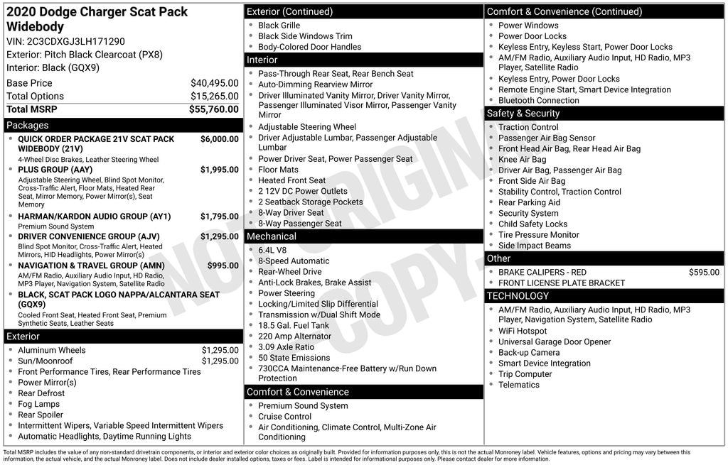 Unleash the power of this 2020 Dodge Charger R/T Scat Pack Widebody, a true muscle car built for performance and style. With one owner and a clean CARFAX, this Charger delivers adrenaline-pumping performance with a commanding presence.