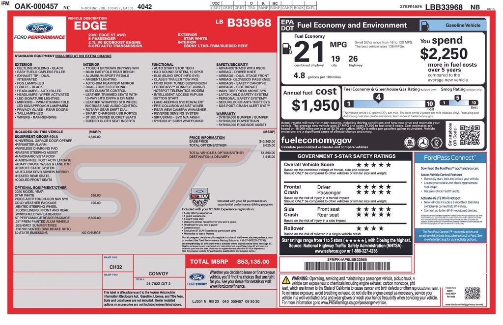 2020 Ford Edge ST AWD Clean CARFAX. CARFAX One-Owner.