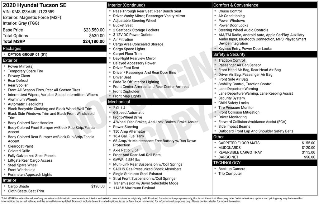 Drive with confidence in this Magnetic Force Metallic 2020 Hyundai Tucson SE! With one previous owner and a clean Carfax, this FWD SUV combines reliability, efficiency, and modern style.
