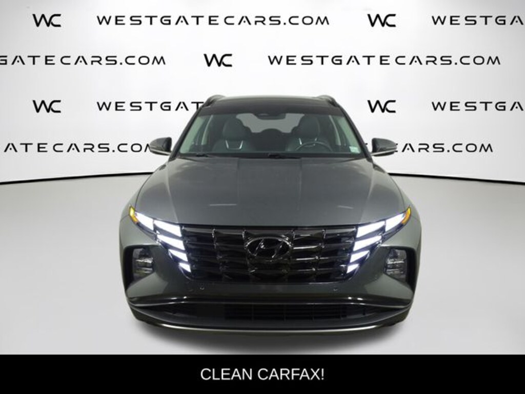 Discover the exceptional 2022 Hyundai Tucson Limited, a premium SUV that seamlessly blends style, technology, and performance. With its sleek gray exterior, this Tucson is a true head-turner, showcasing Hyundai's signature design language and commanding presence on the road.