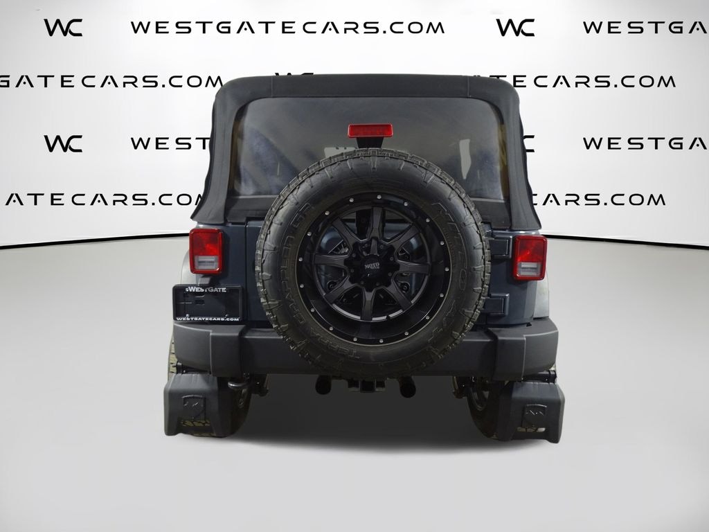 Thoughtful touches like the power-heated mirrors, auto-dimming rearview mirror, and leather-wrapped steering wheel and shift knob elevate the driving experience, while the deep-tint sunscreen windows and premium black soft top provide a premium, custom look. With a fuel-efficient 20 MPG highway rating, this Wrangler Unlimited Sport is as practical as it is capable.