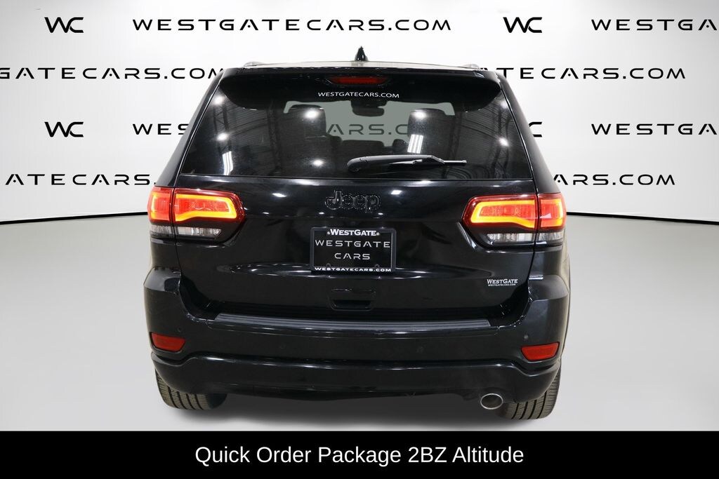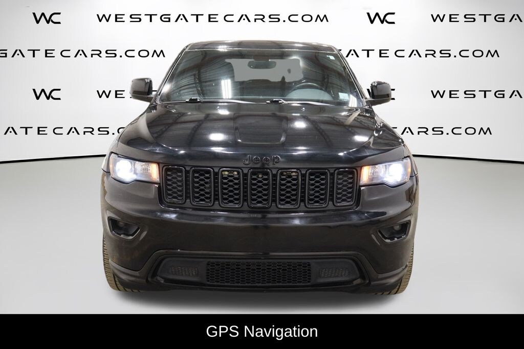 Stepping inside, you'll be greeted by the Uconnect 4C Nav system with an 8.4-inch display, providing seamless integration of your smartphone's features and intuitive navigation. The Altitude package adds a host of luxurious touches, including a sleek gloss black grille, body-color claddings, and a unique dark lens taillight design that sets this Grand Cherokee apart from the crowd.
