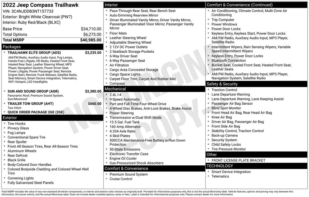2022 Jeep Compass Trailhawk 4WD CARFAX One-Owner.