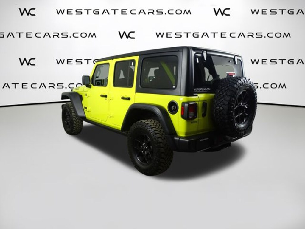 Backup Camera, 240 Amp Alternator, 4-Wheel Drive Swing Gate Decal, 4.10 Rear Axle Ratio, 7 & 4 Pin Wiring Harness, 97 MPH Vehicle Max Speed Calibration, Advanced Brake Assist, Automatic Headlamps, Auxiliary Switches, Black Grille, Class II Receiver Hitch, Conventional Differential Front Axle, Corning Gorilla Glass, Dana M210 Wide HD Tube Front Axle, Dana M220 Wide Rear Axle, Daytime Running Lamps LED Accents, Deep Tint Sunscreen Windows, E-Locker Rear Axle, Enhanced Adaptive Cruise Control, Front 1-Touch Down Power Windows, Front LED Fog Lamps, Full Speed Forward Collision Warning Plus, Injection Molded Black Rear Bumper, LED Premium Reflector Headlamps, Mold In Color Bumper w/Gloss Black, Molded in Color Rubicon Highline Flare, MOPAR All-Weather Floor Mats, Off-Road Plus Mode, Power Heated Mirrors, Premium Wrapped Steering Wheel, Quick Order Package 24W Willys, Remote Keyless Entry, Security Alarm, Speed Sensitive Power Locks, Sun Visors w/Illuminated Vanity Mirrors, Wheels: 17" x 7.5" Painted Black, Willy's Suspension, Willys, Willys Hood Decal, 110 MPH Vehicle Max Speed Calibration, 4-Wheel Disc Brakes, 8 Speakers, ABS brakes, Air Conditioning, AM/FM radio, Apple CarPlay/Android Auto, Aux Battery, Black 3-Piece Hard Top, Brake assist, Cloth Low-Back Bucket Seats, Compass, Delay-off headlights, Driver door bin, Driver vanity mirror, Dual front impact airbags, Dual front side impact airbags, Electronic Stability Control, Freedom Panel Storage Bag, Front anti-roll bar, Front Bucket Seats, Front Center Armrest w/Storage, Front fog lights, Front reading lights, Integrated roll-over protection, Low tire pressure warning, No Soft Top, Non-Lock Fuel Cap w/o Discriminator, Normal Duty Suspension, Occupant sensing airbag, Outside temperature display, Overhead airbag, ParkView Rear Back-Up Camera, Passenger door bin, Passenger vanity mirror, Power steering, Radio data system, Radio: Uconnect 5 w/12.3" Display, Rear anti-roll bar, Rear reading lights, Rear Window Defroster, Rear Window Wiper/Washer, Speed control, Split folding rear seat, Steering wheel mounted audio controls, Stop-Start Dual Battery System, Tachometer, Telescoping steering wheel, Tilt steering wheel, Traction control, Trip computer, Variably intermittent wipers, Wheels: 17" x 7.5" Black Steel Styled, 240 Amp Alternator, 4-Wheel Drive Swing Gate Decal, 4.10 Rear Axle Ratio, 7 & 4 Pin Wiring Harness, 97 MPH Vehicle Max Speed Calibration, Advanced Brake Assist, Automatic Headlamps, Auxiliary Switches, Black Grille, Class II Receiver Hitch, Conventional Differential Front Axle, Corning Gorilla Glass, Dana M210 Wide HD Tube Front Axle, Dana M220 Wide Rear Axle, Daytime Running Lamps LED Accents, Deep Tint Sunscreen Windows, E-Locker Rear Axle, Enhanced Adaptive Cruise Control, Front 1-Touch Down Power Windows, Front LED Fog Lamps, Full Speed Forward Collision Warning Plus, Injection Molded Black Rear Bumper, LED Premium Reflector Headlamps, Mold In Color Bumper w/Gloss Black, Molded in Color Rubicon Highline Flare, MOPAR All-Weather Floor Mats, Off-Road Plus Mode, Power Heated Mirrors, Premium Wrapped Steering Wheel, Quick Order Package 24W Willys, Remote Keyless Entry, Security Alarm, Speed Sensitive Power Locks, Sun Visors w/Illuminated Vanity Mirrors, Wheels: 17" x 7.5" Painted Black, Willy's Suspension, Willys, Willys Hood Decal.