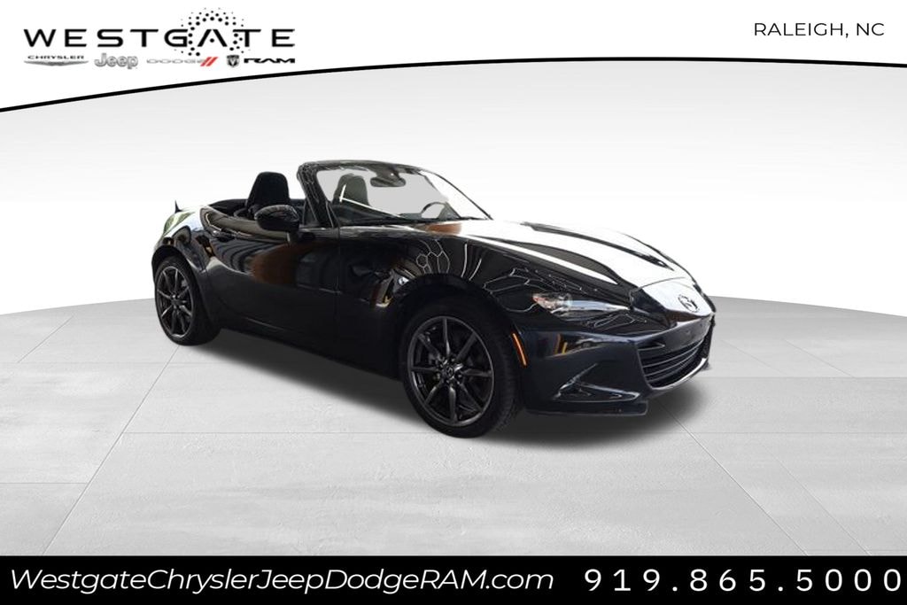 MX-5 Miata Sport with 5201 miles!! This super clean Mazda, Automatic, Power Windows and Locks, Alloy Wheels and More!!, 4-Wheel Disc Brakes, 6 Speakers, ABS brakes, AM/FM Radio, AM/FM radio, Bumpers: body-color, Dual front impact airbags, Electronic Stability Control, MAZDA CONNECT Infotainment System, Navigation System, Panic alarm, Power windows, Radio data system, Remote keyless entry, Speed control, Steering wheel mounted audio controls, Air Conditioning, Alloy wheels, Brake assist, Cloth Upholstery, Convertible roof wind blocker, Driver vanity mirror, Dual front side impact airbags, Emergency communication system: MAZDA CONNECT, Exterior Parking Camera Rear, Four wheel independent suspension, Front anti-roll bar, Front Bucket Seats, Front Center Armrest, Glass rear window, Illuminated entry, Leather Shift Knob, Low tire pressure warning, Occupant sensing airbag, Outside temperature display, Passenger vanity mirror, Power door mirrors, Power steering, Rear anti-roll bar, Rear window defroster, Speed-sensing steering, Sport steering wheel, Tachometer, Telescoping steering wheel, Tilt steering wheel, Traction control, Trip computer, Variably intermittent wipers, Wheels: 16" x 6" Metallic Black Aluminum Alloy, Come see this vehicle and many more at Westgate CJDR in Raleigh!!, and much more! Call Today!, GREAT MILES, HARD TO FIND CAR, 4-Wheel Disc Brakes, 6 Speakers, ABS brakes, AM/FM Radio, AM/FM radio, Bumpers: body-color, Dual front impact airbags, Electronic Stability Control, MAZDA CONNECT Infotainment System, Navigation System, Panic alarm, Power windows, Radio data system, Remote keyless entry, Speed control, Steering wheel mounted audio controls.