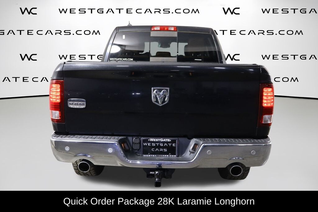 This 2016 Ram 1500 Laramie Longhorn is an exceptional choice for those seeking a powerful, well-equipped and refined full-size pickup. Boasting a commanding 3.0L V6 EcoDiesel engine paired with an 8-speed automatic transmission, this Ram delivers an impressive blend of capability and efficiency, with 20 city/28 highway MPG ratings.