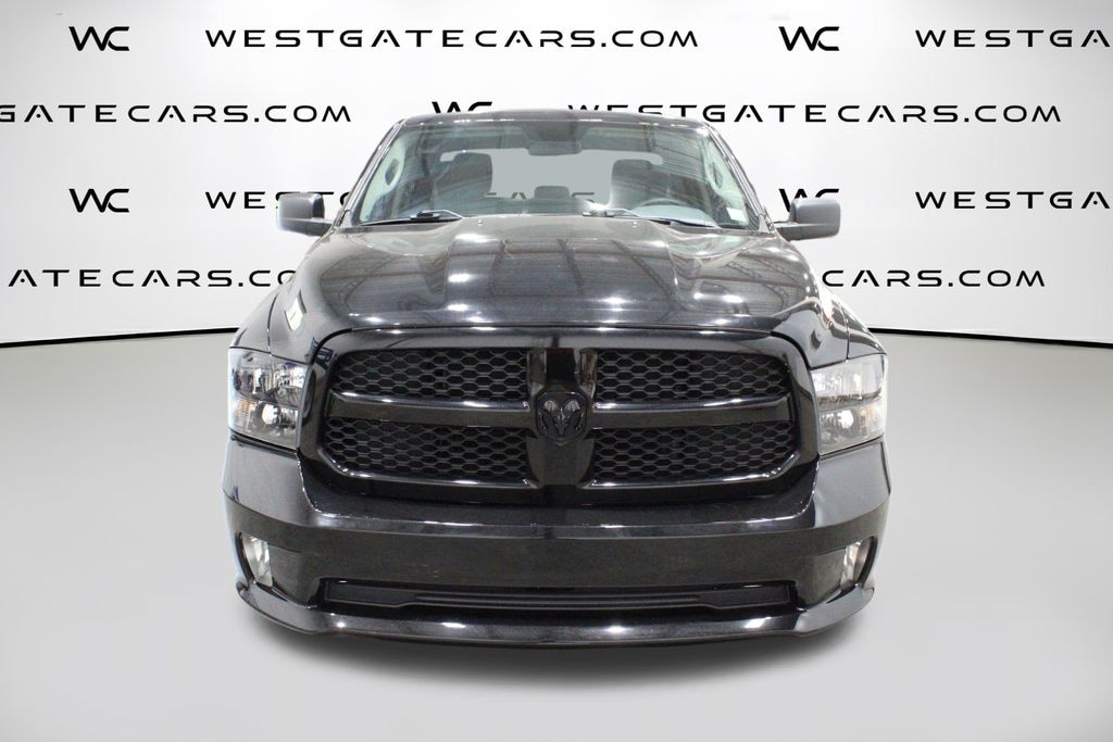 1-Year SiriusXM Radio Service, 17" x 7" Aluminum Wheels, 17" x 7" Steel Wheels, 3.21 Rear Axle Ratio, 4-Wheel Disc Brakes, 4x4 Flat Black Badge, 5.0" Touchscreen Display, 6 Speakers, ABS brakes, Active Grille Shutters, Air Conditioning, AM/FM radio, Audio Jack Input for Mobile Devices, Auto-dimming Rear-View mirror, Black Exterior Truck Badging, Black Headlamp Bezels, Black RAM Head Tailgate Badge, Body Color Front Fascia, Body Color Grille, Body Color Grille w/Black RAM's Head, Body Color Rear Bumper w/Step Pads, Brake assist, Carpet Floor Covering, Center Hub, Cloth 40/20/40 Bench Seat, Delay-off headlights, Delete Class IV Receiver Hitch, Delete Spray In Bedliner, Driver door bin, Dual front impact airbags, Dual front side impact airbags, Electronic Shift, Electronic Stability Control, Express Black Accent Package, Express Value Package, Exterior Mirrors w/Heating Element, For More Info, Call 800-643-2112, Front anti-roll bar, Front Center Armrest, Front Floor Mats, Front Fog Lamps, Front wheel independent suspension, Fully automatic headlights, GPS Antenna Input, Heated door mirrors, Heavy Duty Vinyl 40/20/40 Split Bench Seat, Integrated Voice Command w/Bluetooth, Low tire pressure warning, Manual Adjust Seats, Media Hub (USB, AUX), No Satellite Coverage w/AK/HI/PR/VI/GU, Occupant sensing airbag, Overhead airbag, Overhead Console, ParkView Rear Back-Up Camera, Passenger door bin, Power door mirrors, Power steering, Power windows, Quick Order Package 22J Express, Radio data system, Radio: 3.0, Radio: Uconnect 3 w/5" Display, Ram 1500 Express, Rear anti-roll bar, Rear Floor Mats, Rear Folding Seat, Rear step bumper, Rear View Day/Night Mirror, Remote Keyless Entry w/All-Secure, Remote USB Port, Semi-Gloss Black Hub, SiriusXM Satellite Radio, Speed control, Tachometer, Temperature & Compass Gauge, Tilt steering wheel, Tip Start, Traction control, Variably intermittent wipers, Voltmeter, Wheels: 20" x 8" Aluminum Chrome Clad, Wheels: 20" x 8" Semi-Gloss Black Aluminum.