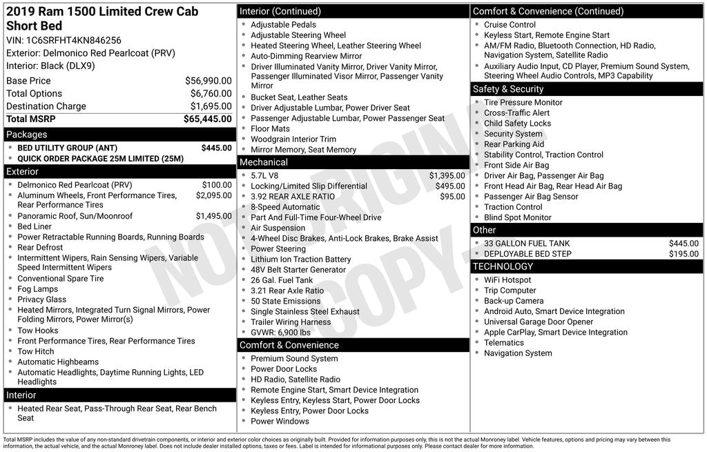 With its exceptional capability, premium features, and striking Delmonico Red Pearlcoat exterior, this 2019 Ram 1500 Limited is a true standout in the full-size truck segment. Experience the difference for yourself and schedule a test drive today. We're confident you'll be impressed by the uncompromising quality and value of this remarkable vehicle.