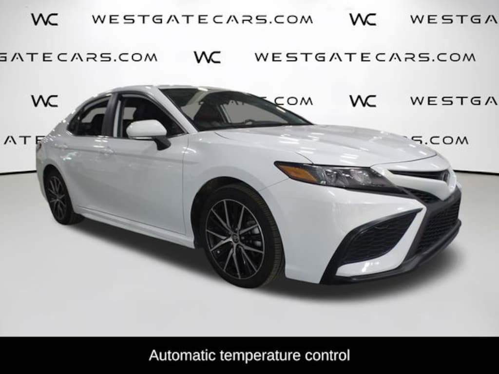 Step inside the Camry SE, and you'll be greeted by a well-appointed interior that prioritizes comfort and convenience. The sport-inspired SofTex-trimmed seats with fabric inserts provide a perfect balance of style and support, ensuring a comfortable driving experience. Automatic climate control, a power-adjustable driver's seat, and steering wheel-mounted audio controls are just a few of the features that make this Camry SE a joy to drive.