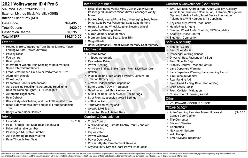 This 2021 Volkswagen ID.4 Pro S is equipped with an impressive array of premium features, including: