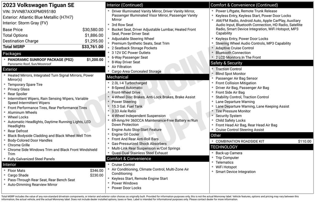 Elevate your daily commute or weekend adventures with the Tiguan's impressive array of premium features. The panoramic sunroof lets you soak in the natural light and fresh air, while the 3-row rubber monster mats and heavy-duty trunk liner keep your interior pristine. The cargo area retractable privacy cover and comprehensive roadside assistance kit add even more convenience and peace of mind.